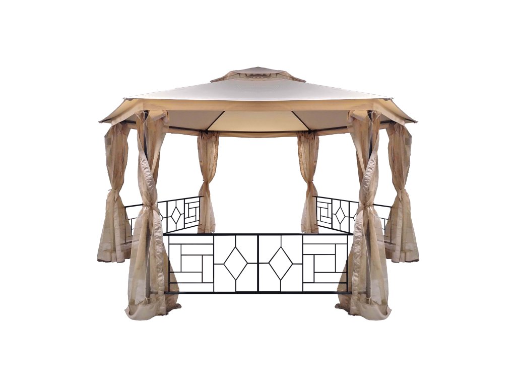 Zahradní altán TOKIO má ocelový rám s práškovým nástřikem v elegantní černé barvě. Pevná konstrukce a vysoce kvalitní materiály zaručují stabilitu a odolnost, díky které vám altán Teesa poslouží mnoho let. Důležité jsou tři stylové zábradlí, která obklopují altán, přidávají mu kouzlo a estetiku a zároveň chrání vnitřní prostor.