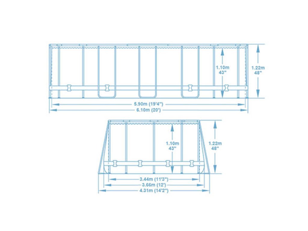 - Vnější rozměry bazénu 610 x 431 x 122 cm
