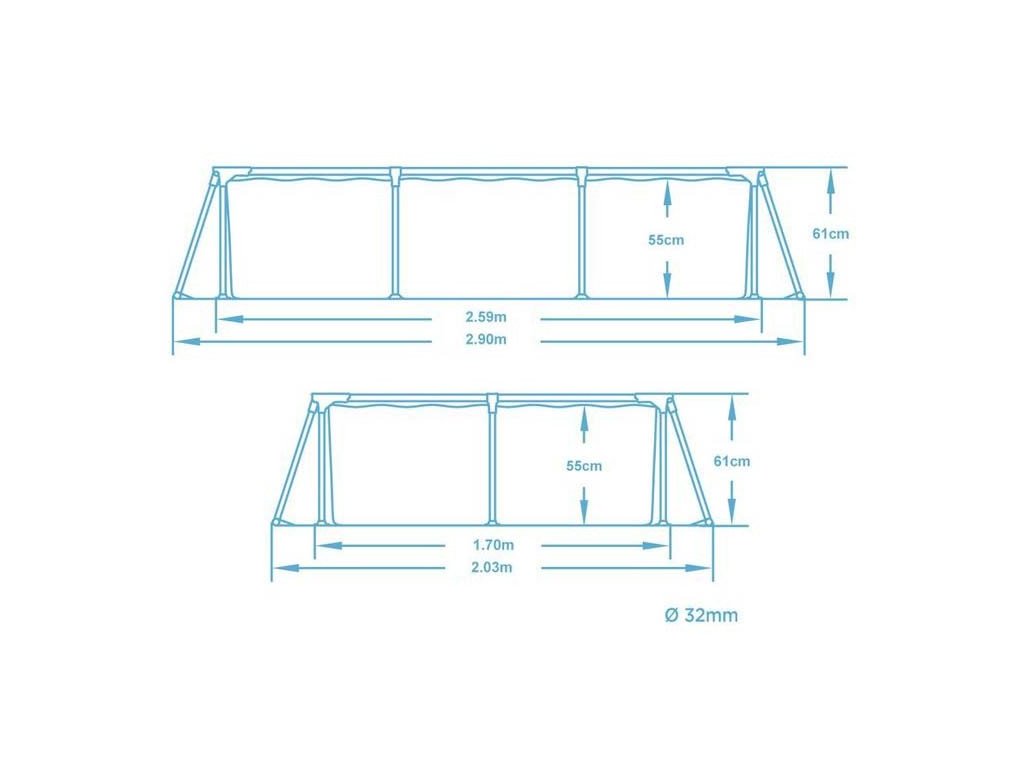 - Vnější rozměry bazénu 290 x 203 x 61 cm