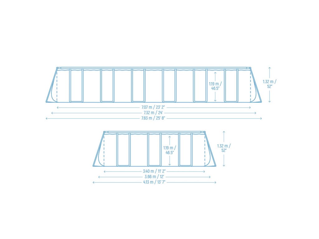- Rozměry bazénu 732x366x132cm