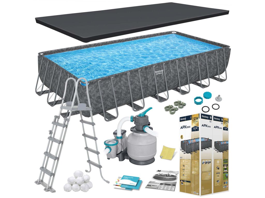 - Kovový rámový bazén 732 x 366 x 132 cm