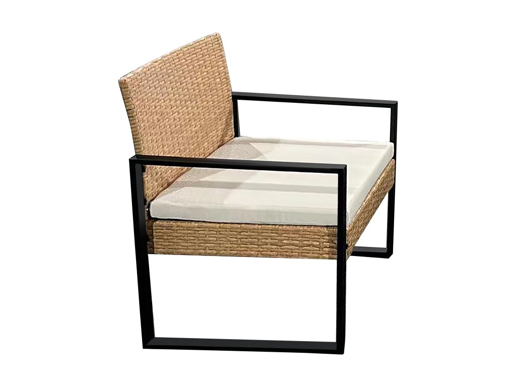 Stylový design v světle hnědé barvě a elegantní dvojité půlkruhové pletení dodává zahradnímu setu AMI výjimečný charakter, který se dokonale hodí k okolí. Celek doplňují černé, práškově lakované hliníkové rámy, které zajišťují stabilitu a pevnost a zároveň zachovávají lehkost konstrukce.