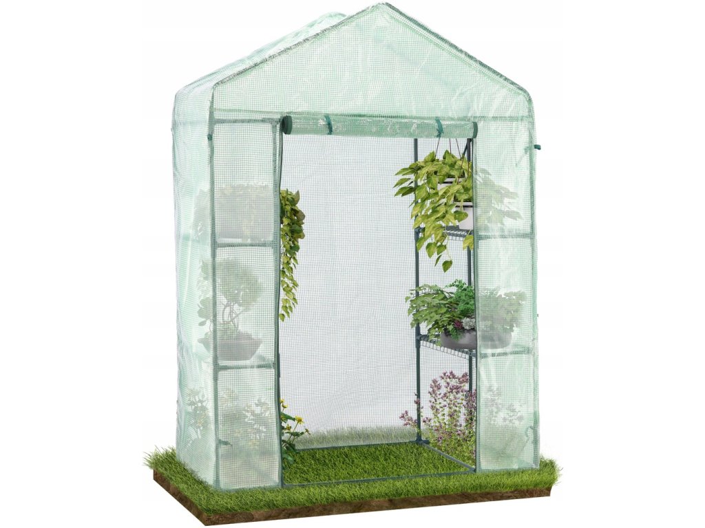 Zahradní skleník s poličkami bílý je vynikající řešení na skladování a pěstování rostlin na zahradě. Díky robustní konstrukci a přídavným poličkám umožňuje efektivně využít prostor a poskytuje optimální podmínky pro růst rostlin.