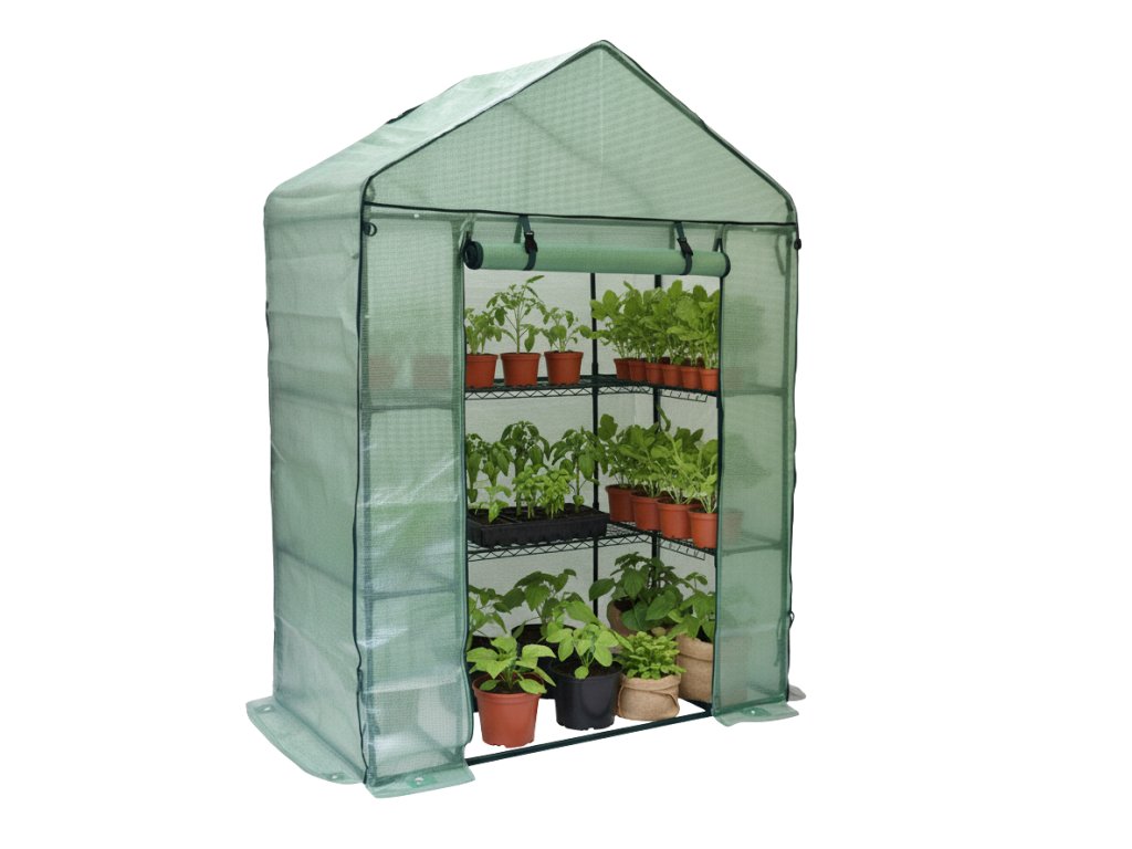 - Možnost svinutí přední části: Umožňuje jednoduchý přístup do vnitřku skleníku