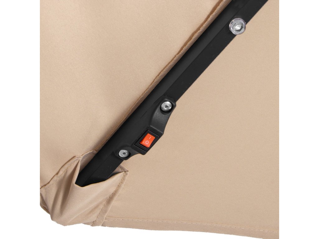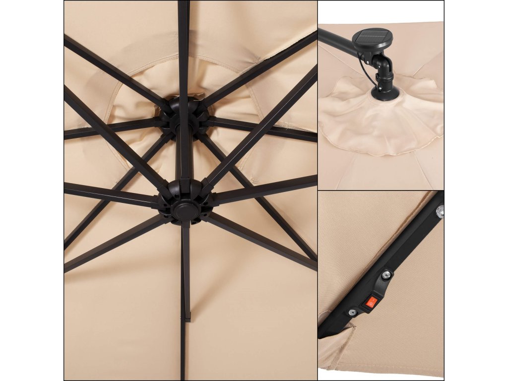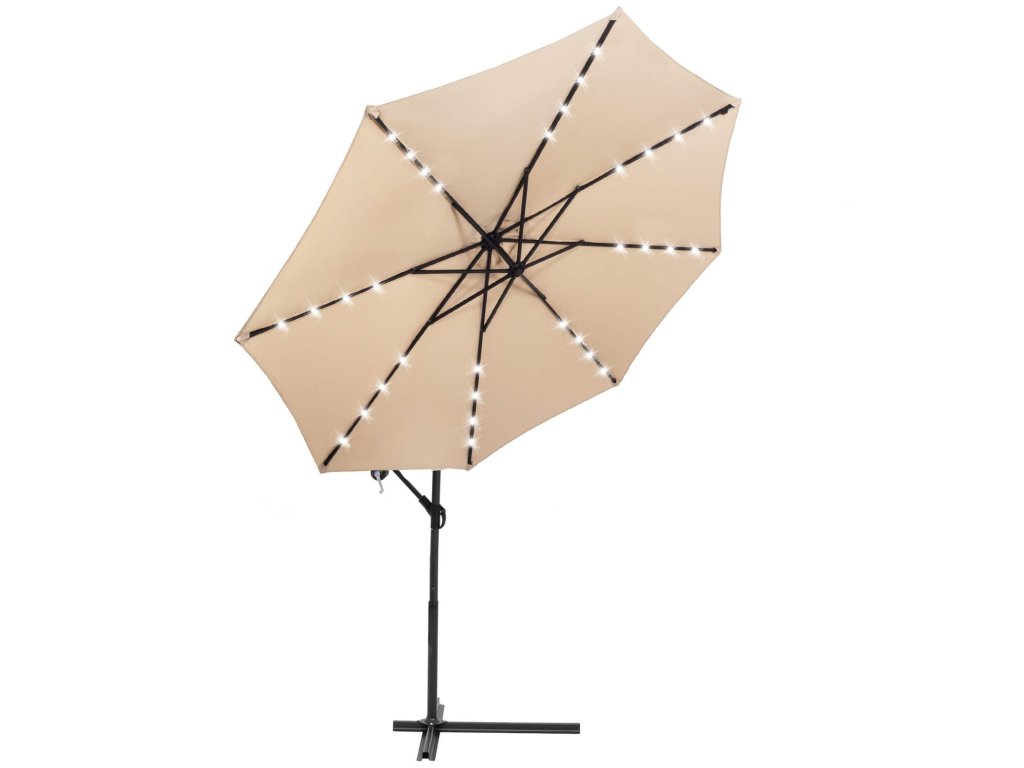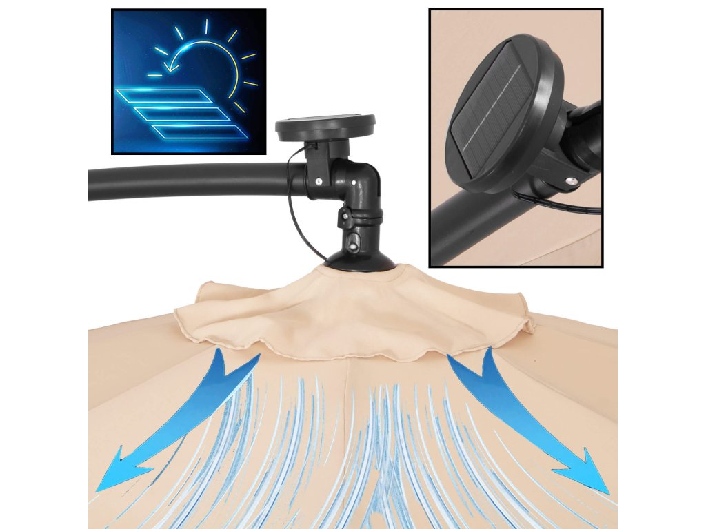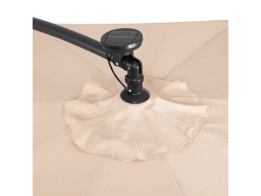 - Solární panel připevněn k deštníku pomocí kabelu, který se nachází na špičce deštníku