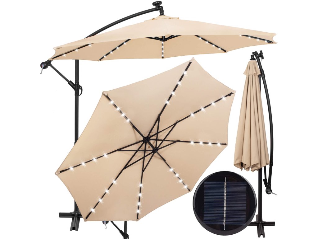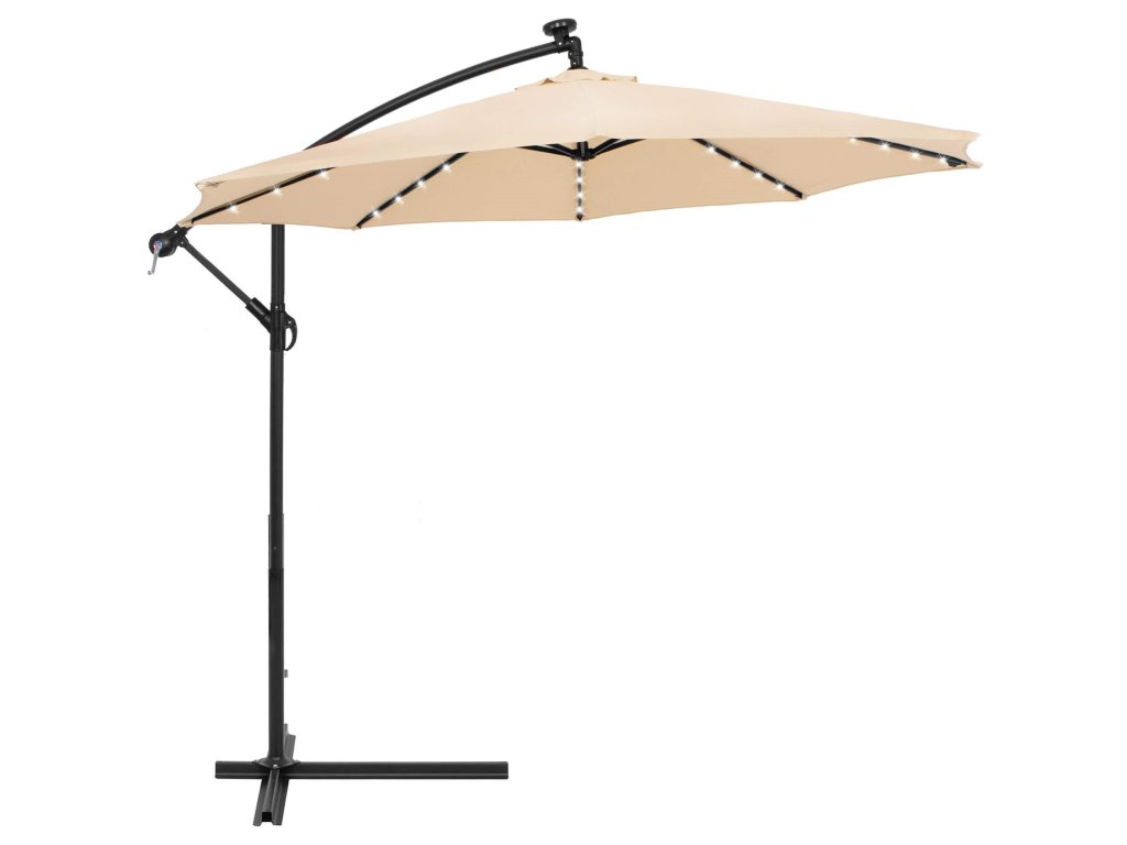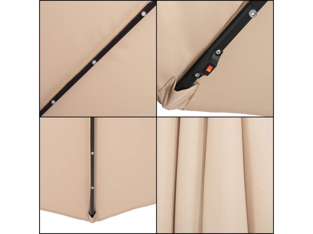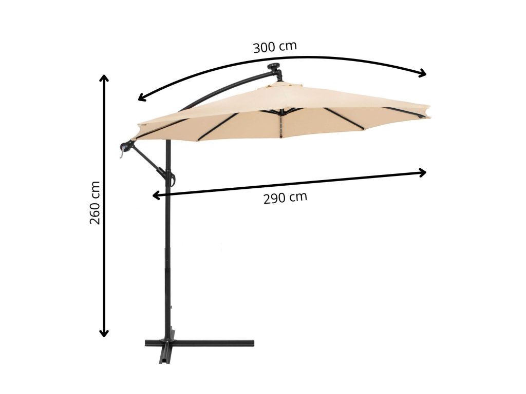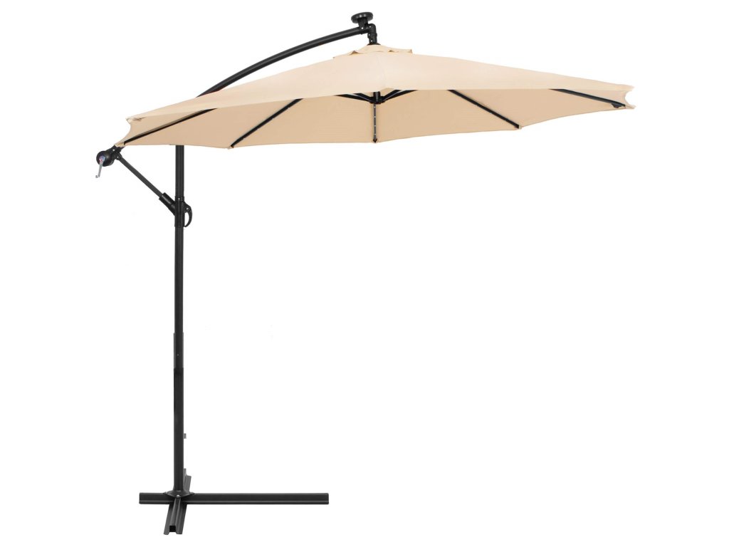 - Solární panel připevněn k deštníku pomocí kabelu, který se nachází na špičce deštníku