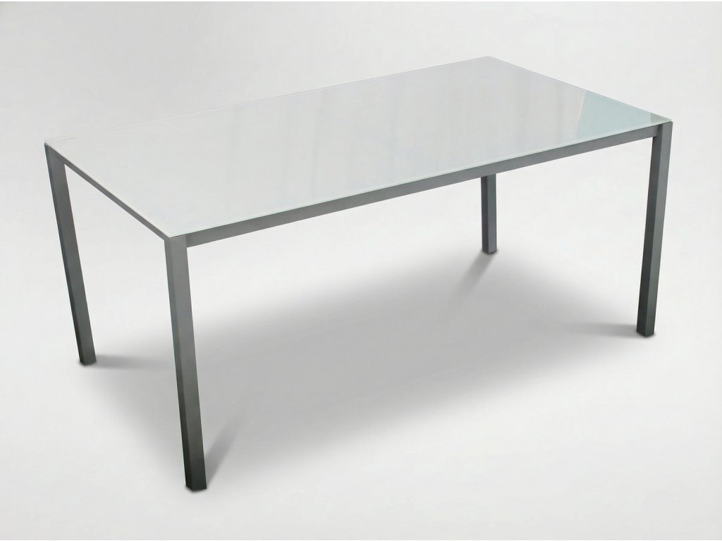 OBDÉLNÍKOVÝ ZAHRADNÍ STŮL S KOVOVÝM RÁMEM A SKLENĚNOU DESKOU