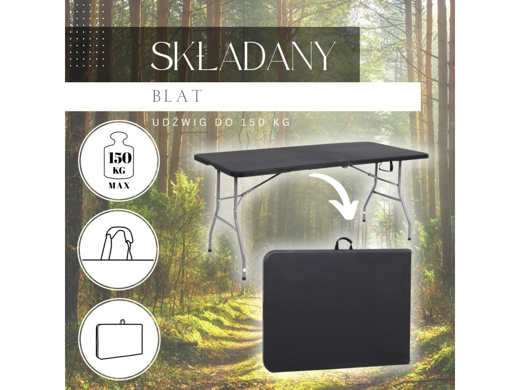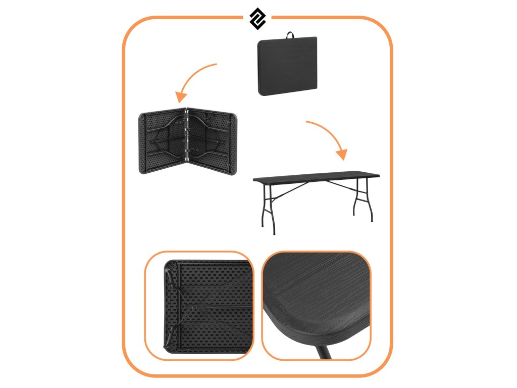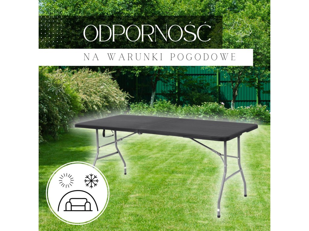 Zahradní stůl skládací 180 cm grafitový GF0052- Barva pracovní desky: černá
