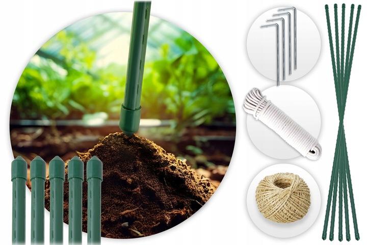 ZDARMA dostanete: 5 tyček na podporu rostlin, sisalový provázek 100 m, 4 kolíky, 4x260 cm bílého provázku na kotevní lana.