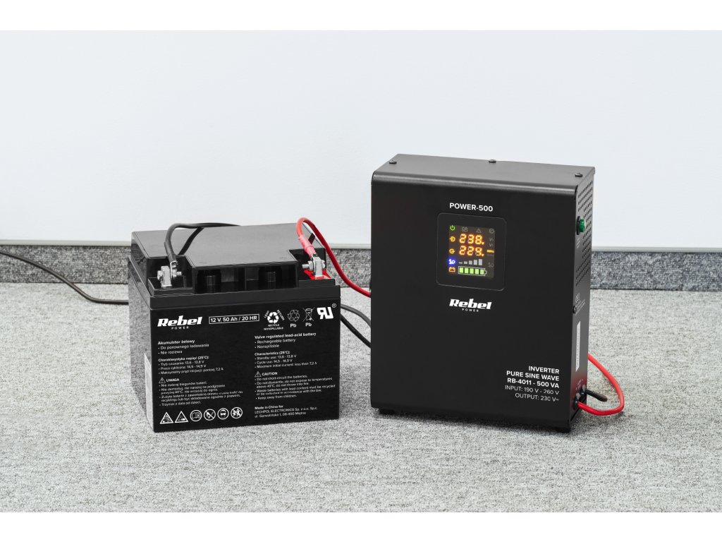 Základem správného fungování nouzového záložního zdroje Rebel je správně zvolená baterie. Pro výběr vhodného zařízení je třeba použít přibližný vzorec: 100 W zatížení = 10 A odběr z baterie.