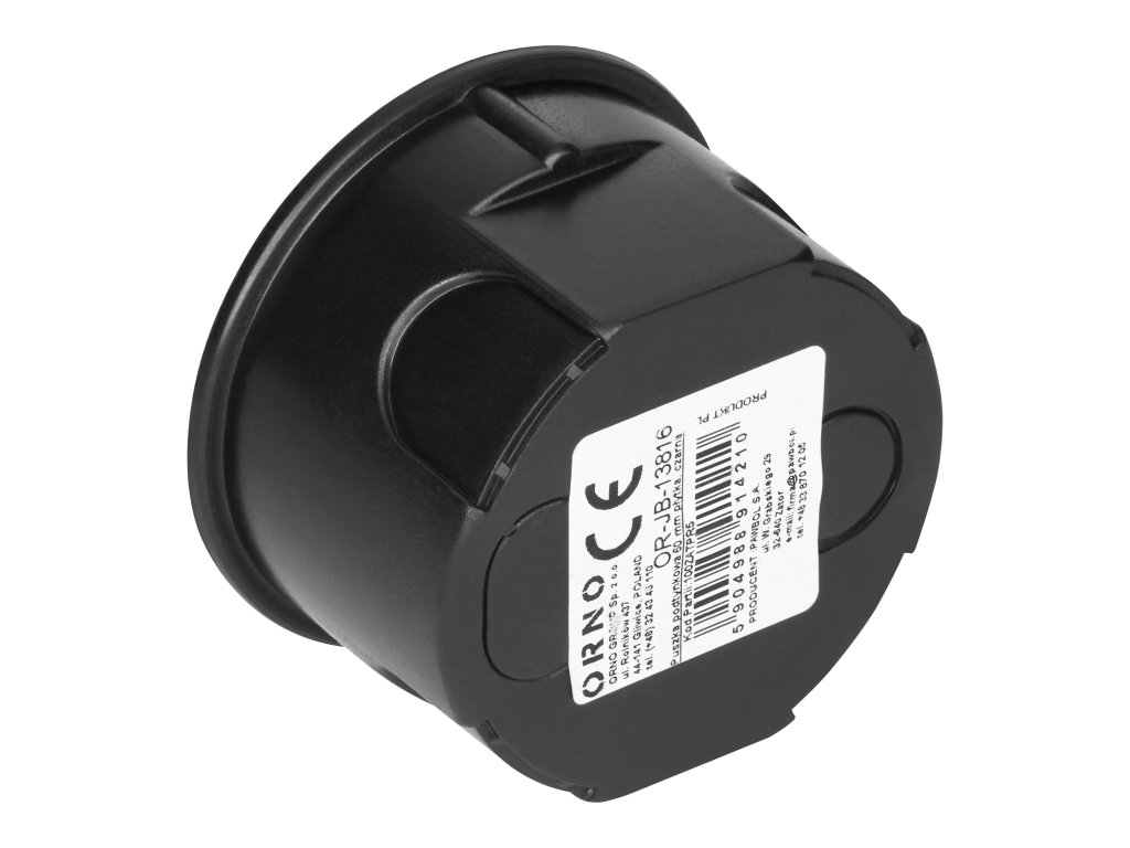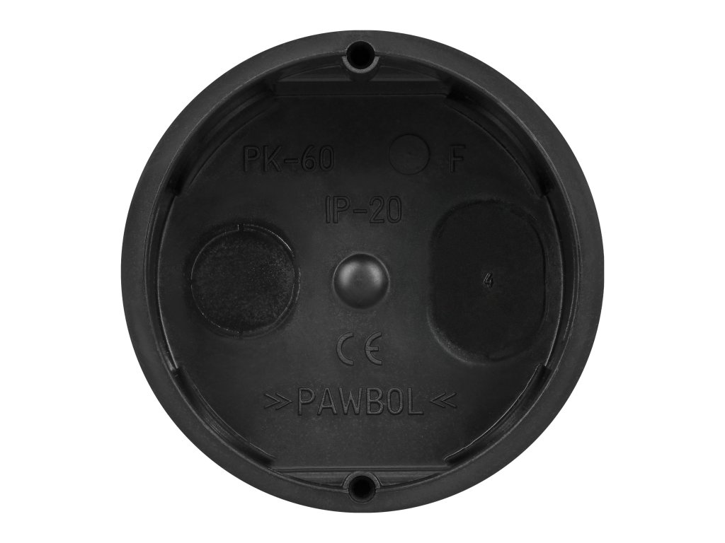 Produkt je vyrobený z plastu v černé barvě. Je kulatý, s průměrem 63 mm. Vnitřní hloubka 40 mm umožňuje instalaci v omezených prostorech.