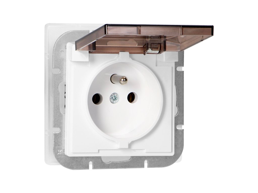 Zásuvka pod omítku jednonásobná 2P+E vodotěsná s krytem Perla, 16A, 250V, PT-16PHL, bílá