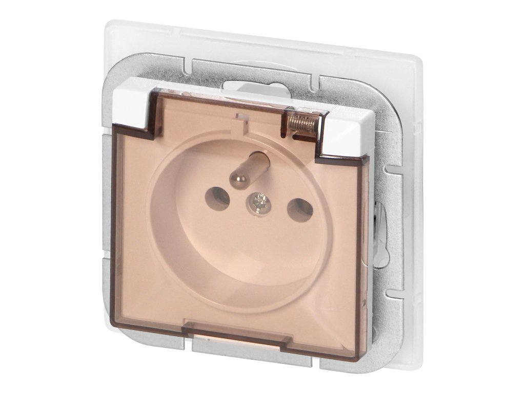 Modulární série se systémem symetrických rámových desek (pro 1-, 2-, 3-, 4-, 5-modulů) umožňující montáž produktu v horizontální i vertikální poloze. Moderní rychlospojovací mechanismus (dráty se připojují přímým zatlačením do těla) zajišťuje bezpečnou a spolehlivou instalaci a odstranění drátů. Zásuvky jsou vybaveny tradičními šroubovými spoji. Vnitřní konstrukce svorek zaručuje bezpečné připojení drátů od 0,75 mm? do 2,5 mm?. Silná a robustní montážní mřížka a vysoce kvalitní samovratné prvky umožňují stabilní a bezpečnou instalaci v krabici. Speciální pružinové prvky usnadňují přiřazení rámu k tělu.Jednoduchá zásuvka typu francouzské 2P+E, vodotěsná s krytem. Určená pro zápustnou montáž. Měla by být používána v interiéru (IP20).