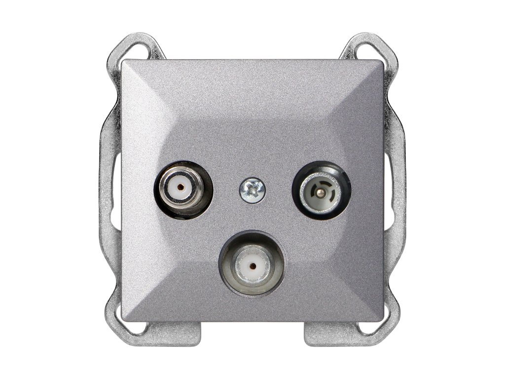 Modulární série se symetrickým systémem rámových desek (pro 1-, 2-, 3-, 4-, 5-modulů) umožňující montáž produktu jak v horizontální, tak ve vertikální poloze. Moderní mechanismus rychlého připojení (vodiče se připojují zasunutím přímo do těla) poskytuje bezpečnou a jistou instalaci a odstranění vodičů. Zásuvky jsou vybaveny tradičními šroubovými spoji. Vnitřní konstrukce svorek zaručuje bezpečné připojení vodičů od 0,75 mm? do 2,5 mm?. Silná a robustní montážní mřížka a vysoce kvalitní samonavíjecí prvky umožňují stabilní a bezpečnou instalaci do krabice. Speciální pružné prvky usnadňují upevnění rámu do těla.RTV/SAT satelitní zásuvka, určená pro zapuštěnou montáž. Umožňuje připojení rozhlasového a televizního přijímače (digitální nebo analogová pozemní TV) a satelitního přijímače. Měla by být použita v interiéru (IP20).