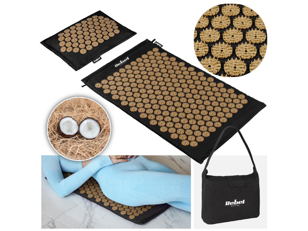Zdravotní podložka ECO s hroty na akupresuru s polštářem, 72x42cm, zlaté hroty, Rebel Active