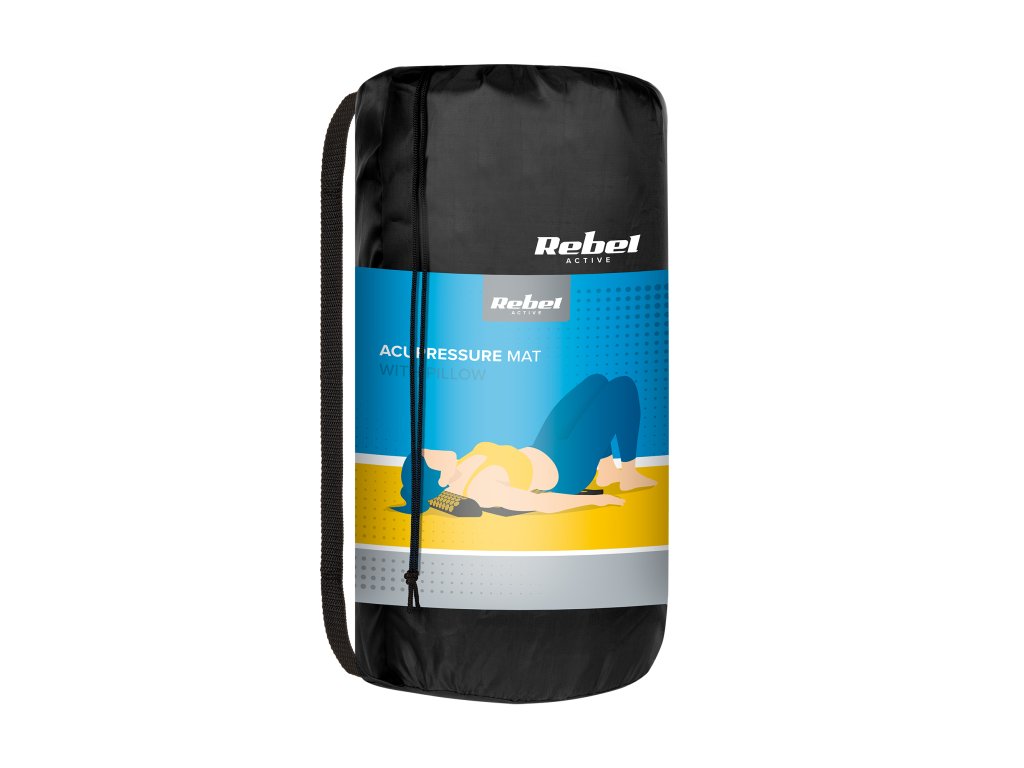 V sadě s podložkou najdete polštář s přesně rozmístěnými 54 hroty. Díky své speciální konstrukci může být polštář používán jako pohodlná opora pro hlavu a krk při ležení na podložce, a také na stimulaci bodů na různých oblastech těla, jako jsou šíje, záda, boky nebo chodidla.