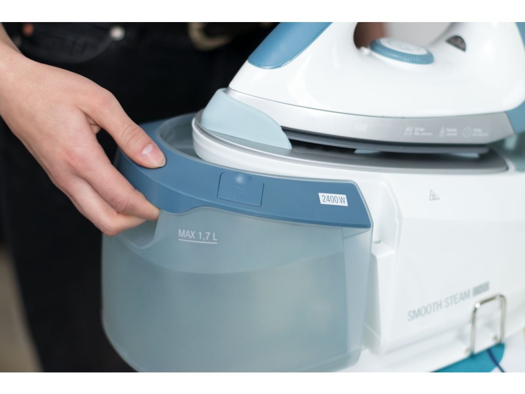 Žehlička s generátorem páry Teesa je vybavena zásobníkem na vodu s kapacitou 1,7 l, který zajišťuje vynikající výkon páry během žehlení. Velkou výhodou je také systém odvápňování, který v kombinaci s možností rychlého vyjmutí zásobníku umožňuje použití vody přímo z kohoutku!