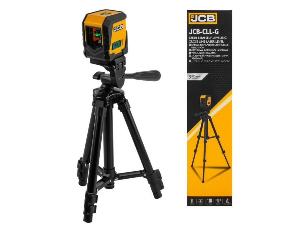 Laserová vodováha křížový zelený samonivelační + stativ JCB