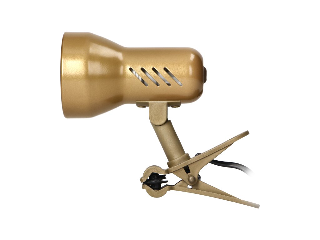 Zlatá stolní lampa s klipem E27, 40W je ideálním řešením pro všechny, kteří hledají stylový a funkční doplněk do svého interiéru. Tato moderní lampa v elegantním zlatém provedení dokáže přetvořit každou místnost na prostor plný tepla a útulnosti. Její velkou předností je praktický klip, který umožňuje snadné uchycení k různým povrchům, čímž poskytuje variabilitu v umístění a maximální flexibilitu při osvětlení.- Elegantní design: Zlatá barva dodává lampě luxusní vzhled, který perfektně doplní moderní i klasické interiéry.